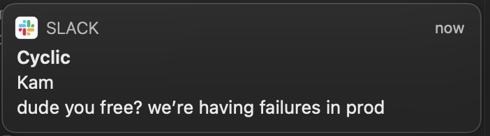 - "dude you free? we're having failures in prod."